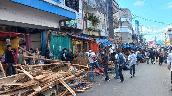 TRIBUNJABAR.ID, SUKABUMI - Lapak pedagang kaki lima (PKL) yang berada di sepanjang Jalan Harun Kabir, Kota Sukabumi, dibongkar secara sukarela, Rabu (16/2/2022).
