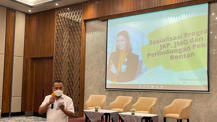 TRIBUNJABAR.ID, BANDUNG -BPJS Ketenagakerjaan (BPJAMSOSTEK) Cabang Cimahi melakukan sosialisasi Program Jaminan Kehilangan Pekerjaan (JKP) dan Penggunaan Aplikasi Jamsostek Mobile (JMO) kepada HRD perusahaan peserta di Hotel Mason Pine Kota Baru Parahyangan, Senin (11/04/2022).