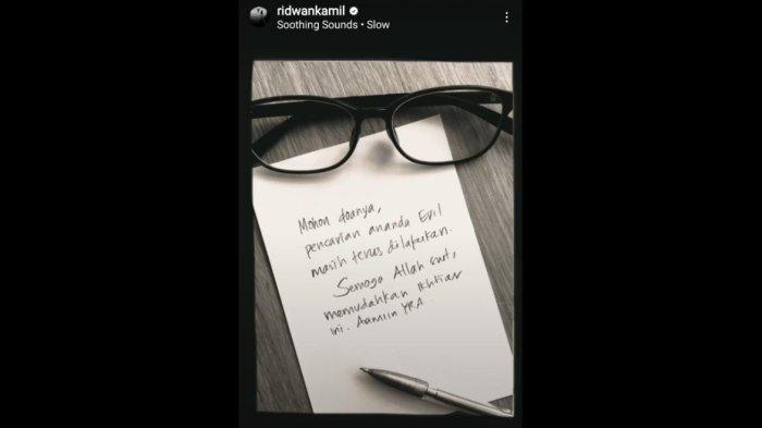 "Mohon doanya, pencarian ananda Eril masih terus dilakukan. Semoga Allah swt, memudahkan ikhtiar ini. Aamiin YRA," tulisan dalam unggahan tersebut.