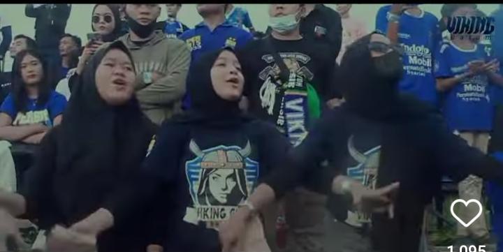Tak hanya menari, ketiganya pun tampak bernyanyi bersama dengan para bobotoh lainnya.