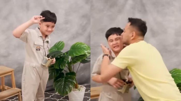 Kemudian tiba-tiba saja Raffi Ahmad masuk ke dalam frame dan menghampiri Rafathar.
