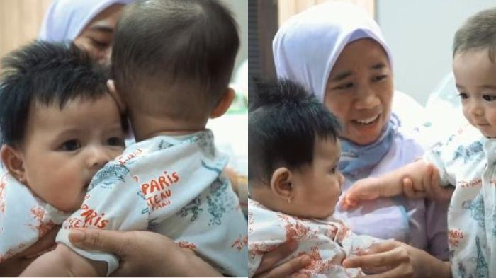TRIBUNJABAR.ID,BANDUNG - Baby Adzam, putra Nathalie Holscher dan Sule anteng bermain dengan baby Ameena.