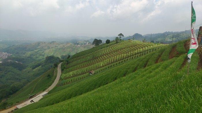 Menghampar gugusan bukit yang ditanami sayuran, seperti daun bawang, bawang merah, selada, dan lainnya.