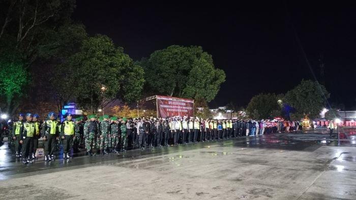 Bupati Sumedang Dony Ahmad Munir memimpin apel pasukan gabungan pengamanan malam pergantian tahun, Sabtu (31/12/2022) malam di Alun-alun Sumedang.