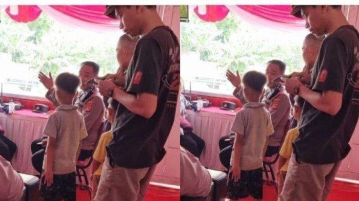 Namun, usai potong rambut itu, anak Yudiansyah, Akbar (5), tertinggal.