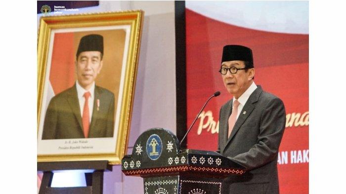 TRIBUNJABAR.ID, JAKARTA – Menkumham RI, Yasonna H. Laoly, lantik dan ambil sumpah anggota Majelis Pengawas Wilayah Notaris (MPWN) Periode Tahun 2021 – 2024 dan Majelis Kehormatan Notaris Wilayah (MKNW) Periode Tahun 2022 - 2025, Rabu, 03 Mei 2021, bertempat di Magnolia Grand Ballroom Mercure Kemayoran Jakarta.