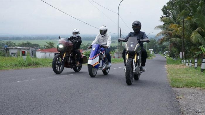 (Kiri-Kanan) Peserta Honda Dream Ride Project, Rifai Nurhasan gaya club style, Jonny Frassaner menghadirkan gaya Streamliner dan Fikri Alhudari hadirkan modifikasi gaya Neo Rally.