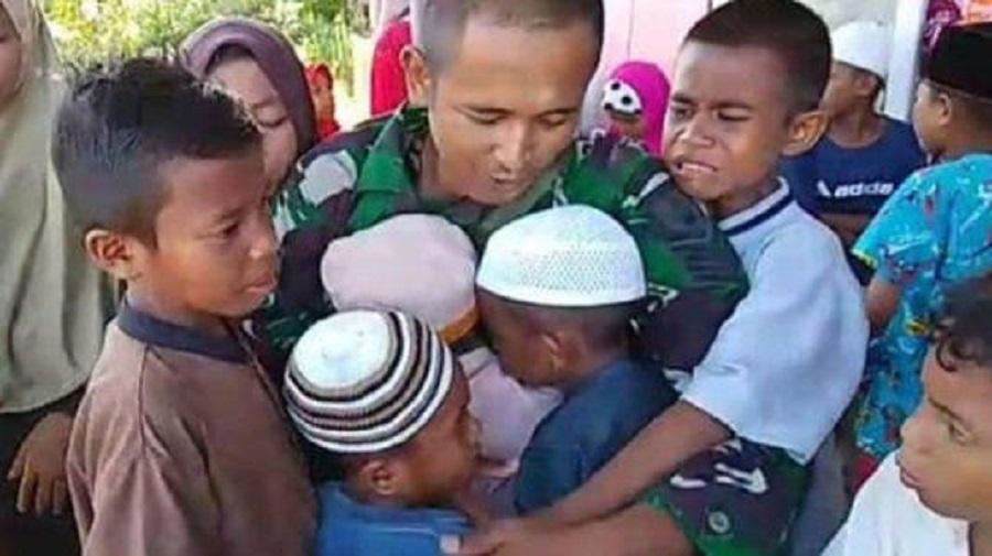 Begitu ratapan anak-anak di Hote, Waesama, Maluku saat Sersan Mayor (Serma) Mohammad Riadi akan meninggalkan mereka.