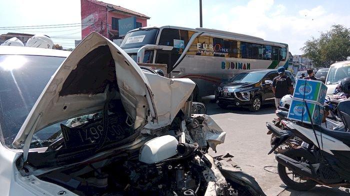 Sebuah Terrios bernomor polisi D 1498 SGO menyeruduk mobil boks bernomor polisi Z 8699 YD, dua sepeda motor, dan satu gerobak milik pedagang kaki lima.