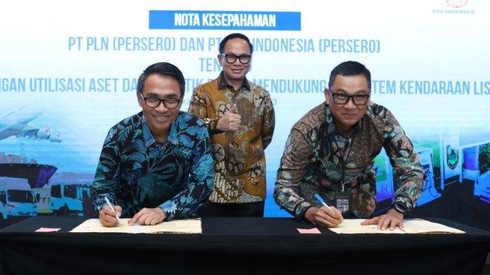 TRIBUNJABAR.ID , JAKARTA - PT PLN (Persero) menjajaki kerja sama dengan PT Pos Indonesia (Persero) dalam pengembangan utilisasi aset dan logistik dalam mendukung ekosistem kendaraan listrik. Sinergi antar Badan Usaha Milik Negara (BUMN) ini ditandai dengan penandatanganan nota kesepahaman (MoU) antar kedua belah pihak di sela acara Focus Group Discussion ’Percepatan Peningkatan Sinergi dan Integrasi Logistik Ekosistem BUMN’ di Hotel Ritz-Carlton Jakarta, Selasa (10/10).