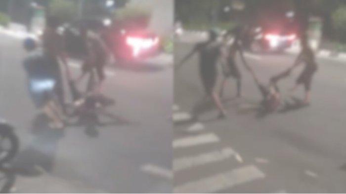 Video amatir lainnya memperlihatkan tubuh pria itu yang sudah terkapaar di aspal dilindas motor warga.