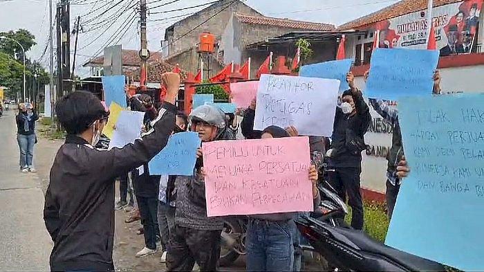 Puluhan Anggota KPPS Unjuk Rasa di Depan Sekretariat DPC PDIP Kabupaten Bandung, Menolak Hak Angket