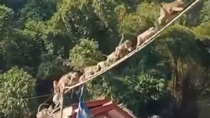 Bahkan video segerombolan monyet yang melintasi genteng dan kabel tersebut, kini viral di media sosial.