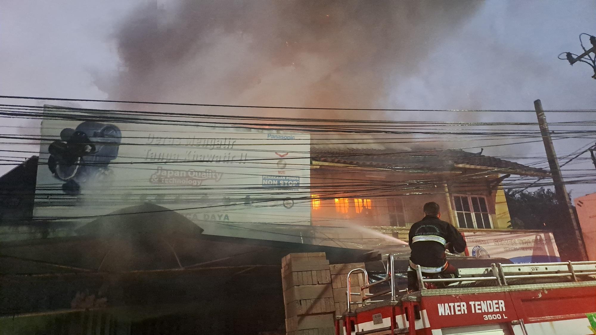 Kebakaran terjadi diduga dari konsleting listrik yang berada di ruko tempat jualan mesin pompa yang menyatu dengan material.