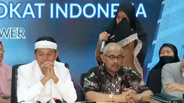 Ibunda Eko Ramdhani, terpidana kasus pembunuhan Vina Cirebon menangis saat konferensi pers di Peradi Tower, Jakarta Timur, Minggu (10/6/2024).