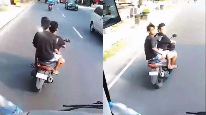 Dalam video tersebut, terlihat dua orang pemuda berboncengan menaikki sepeda motor tanpa menggunakan helm.