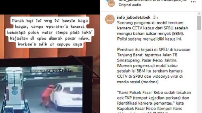 Sebuah video detik-detik petugas SPBU mengejar mobil yang kabur tak bayar usai mengisi BBM di Jakarta Timur, viral di media sosial, korban terluka