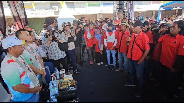TRIBUNJABAR.ID, MAJALENGKA - Massa berseragam PDIP menyatakan dukungan kepada Eman Suherman di Pilkada Majalengka 2024.