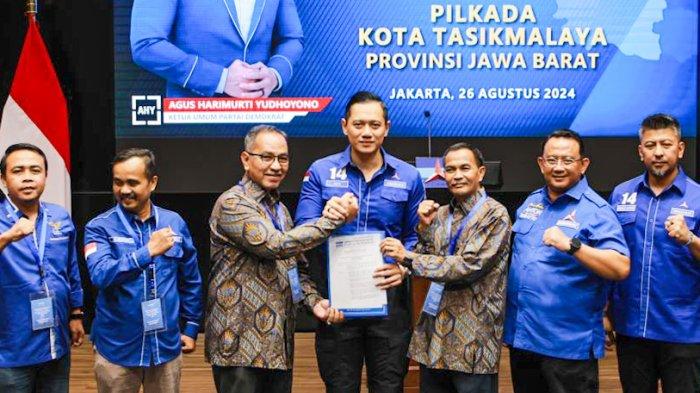 TRIBUNJABAR.ID, KOTA TASIKMALAYA - Ketua Umum Partai Demokrat Agus Harimurti Yudhoyono (AHY) diketahui telah menyerahkan secara langsung Surat Keputusan (SK) B1 KWK untuk pasangan kepala daerah Kota Tasikmalaya, Ivan Dicksan dan Dede Muharam di Jakarta pada Senin (26/8/2024) petang.