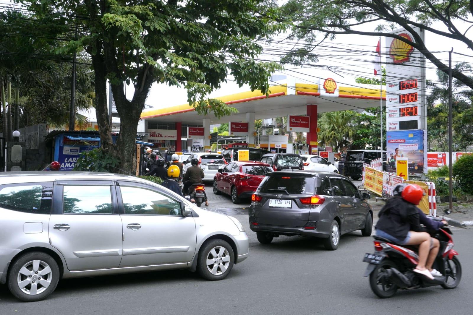 Antrean Kendaraan Roda Dua dan Empat di SPBU Shell Kota Bandung