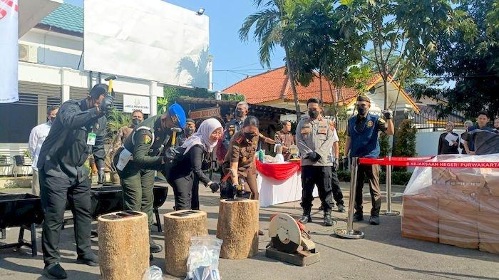 TRIBUNJABAR.ID, PURWAKARTA - Kejaksaan Negeri (Kejari) Purwakarta memusnahkan berbagai barang bukti dari 61 perkara tindak pidana yang telah berkekuatan hukum tetap (inkrah), di halaman Kantor Kejari Purwakarta, Rabu (28/5/2025) pagi.