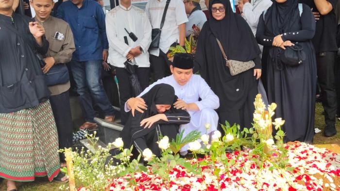 Kesedihan yang mendalam tersebut sangat terasa ketika liang lahat yang mengembumikan jenazah almarhum ditutupi tanah lalu ditaburi bunga.