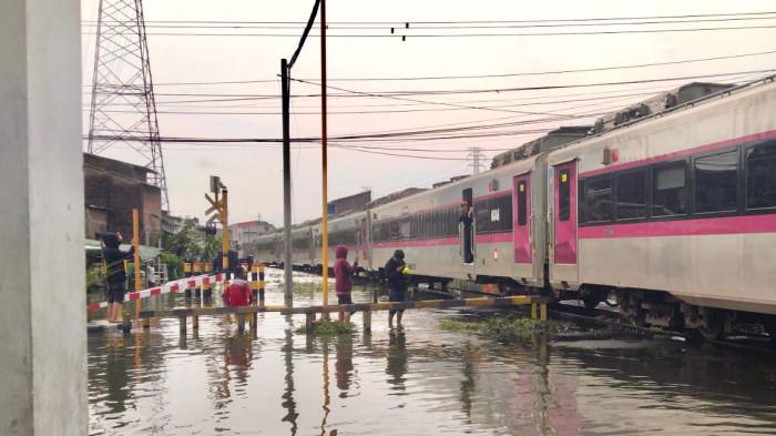Genangan air yang tak kunjung surut menyebabkan rel antara Stasiun Semarang Tawang hingga Stasiun Alastua terendam cukup dalam, hingga perjalanan kereta dari arah barat dan timur terganggu parah.