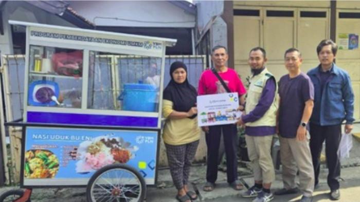 TRIBUNJABAR.ID - Depok – PLN UP3 Depok melalui Yayasan Baitul Maal (YBM) menyalurkan bantuan perlengkapan usaha berupa satu unit gerobak kepada pelaku UMKM nasi uduk di kawasan Depok. Bantuan yang diberi nama “Gerobak Cahaya” ini diharapkan mampu mendukung keberlangsungan usaha dan meningkatkan pendapatan keluarga penerima.