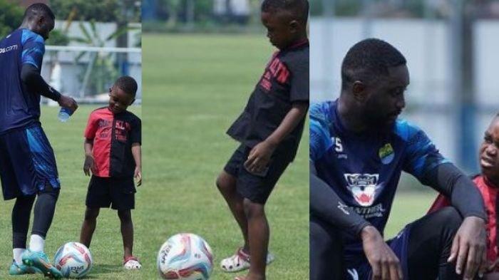 Inilah momen Levy Madinda saat membawa anaknya ikut berlatih bersama Persib Bandung.