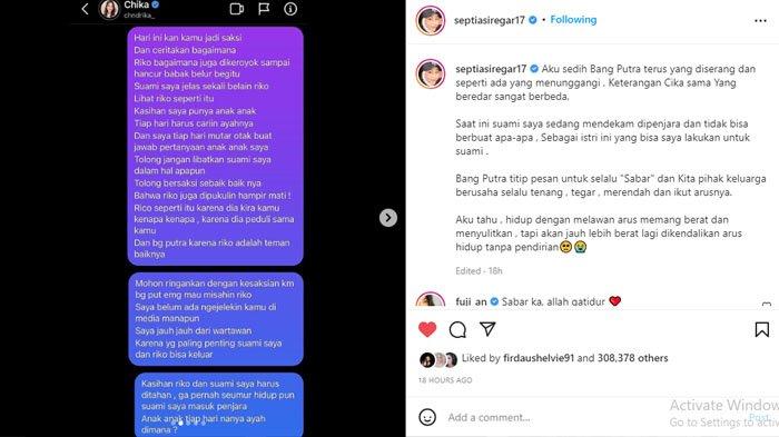 Istri Putra Siregar, Septia Yetri Opani, atau lebih akrab disapa Septia Siregar, membeberkan isi perkacapannya dengan Chandrika Chika.