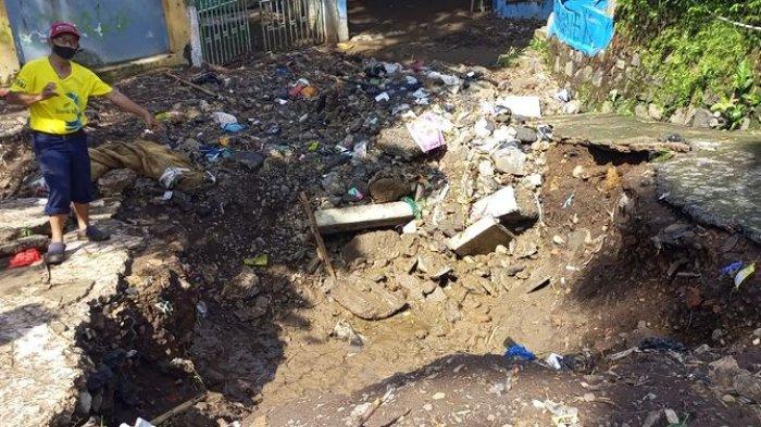 Akibatnya, air meluap ke Jalan Cilember, Kota Cimahi dan menyebabkan, Kampung Cilember, RT 04/06, Kelurahan Cigugur Tengah,