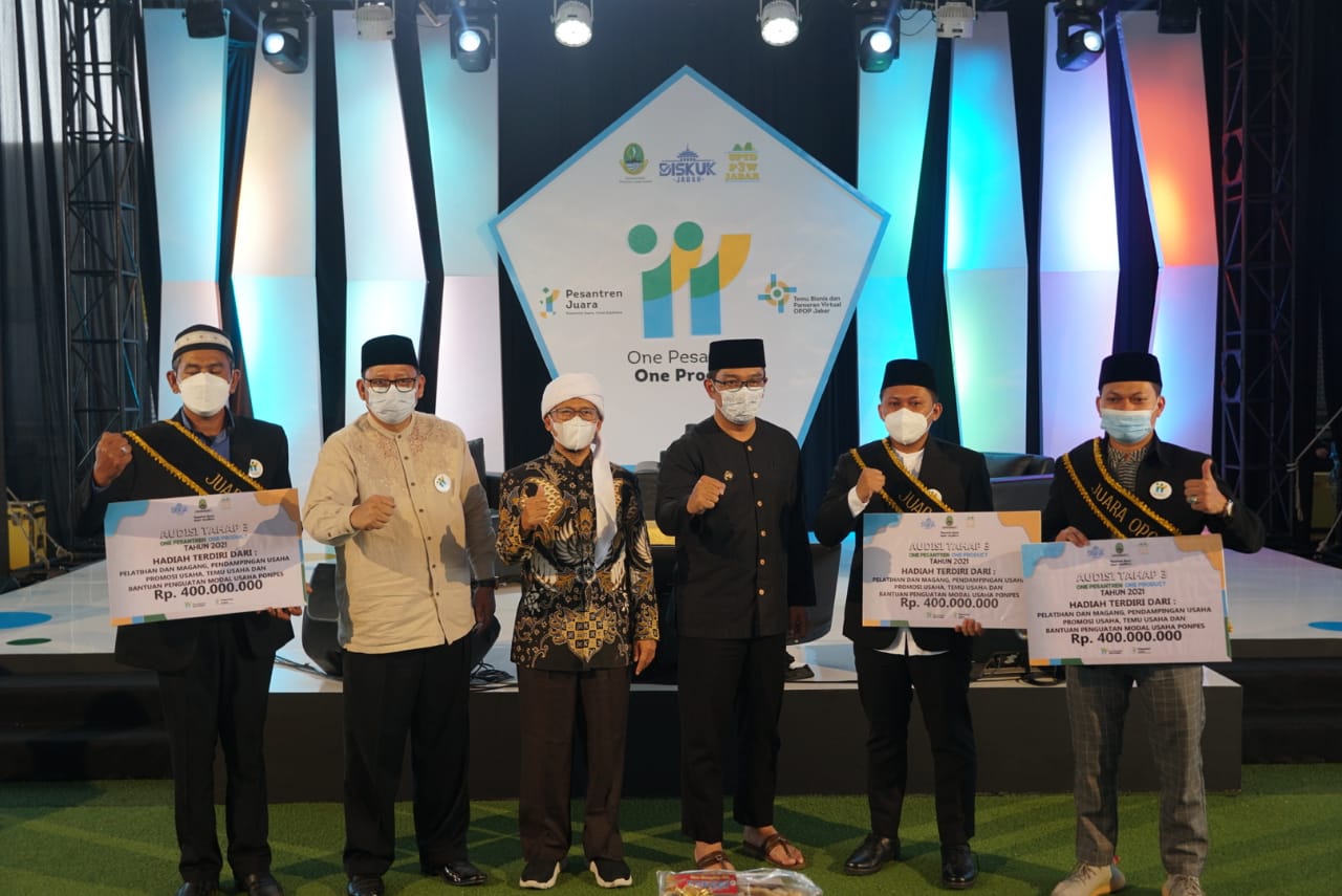 Gubernur Jabar Ridwan Kamil mengatakan program One Pesantren One Product (OPOP) jadi lokomotif dalam meningkatkan ekonomi keumatan di Jabar.