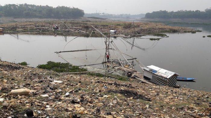 Musim kemarau menyebabkan debit air di Waduk Saguling tepatnya di Kampung Babakan Rongga, Desa Cihampelas,
