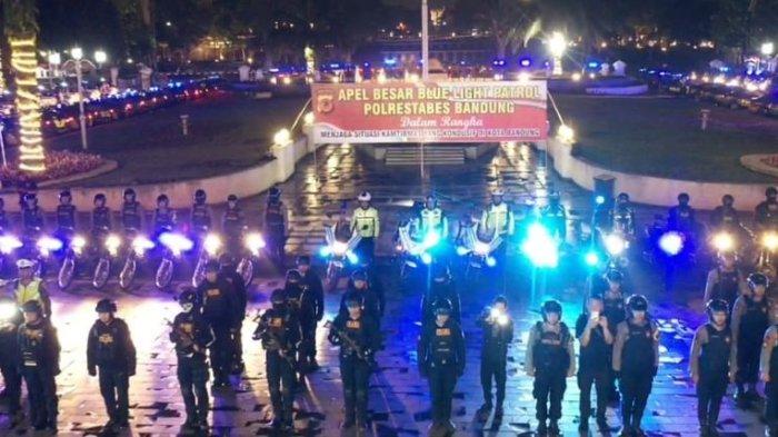 Ratusan personel Polrestabes Bandung disiagakan dalam apel besar Blue Light Patrol di Halaman Gedung Sate, Kota Bandung, Rabu (2/8/2023).