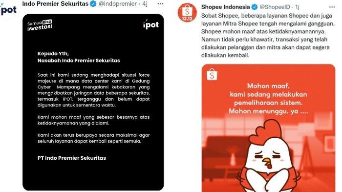 Insiden Gedung Cyber kebakaran berdampak terhadap sejumlah layanan aplikasi seperti Shopee, ruangguru, dan IPOT.