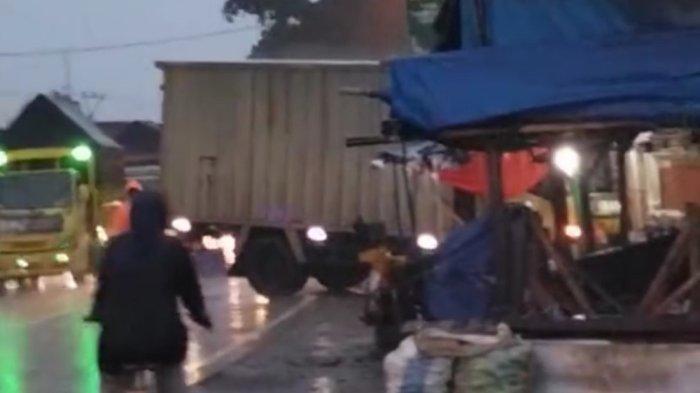 Kecelakaan di Jalur Pantura Indramayu, Truk Boks Seruduk Lapak Pedagang Pasar Parean Kandanghaur