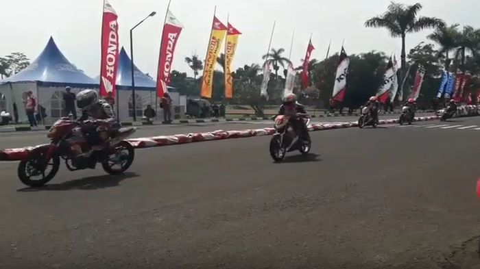 Mereka memacu kendaraannya dengan kecepatan tinggi dan tampak tidak ada ketakutan sama sekali ketika memacu kendaraannya di sirkuit tersebut.