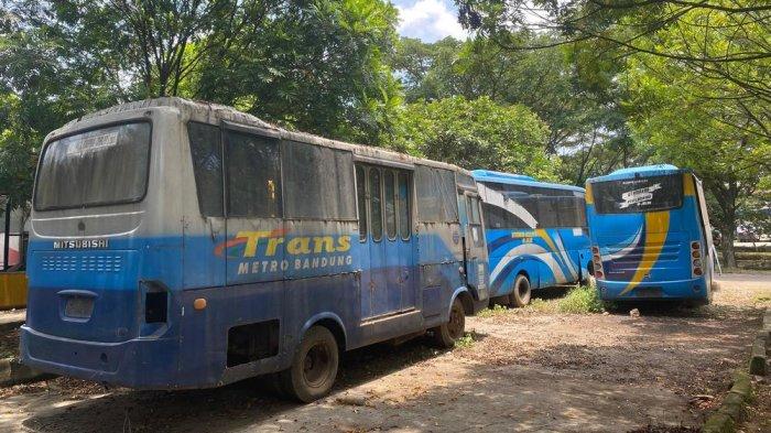 Sebanyak 25 bus sekolah dan Trans Metro Bandung tidak dipakai dan hanya terparkir di area kantor Dinas Perhubungan Kota Bandung.