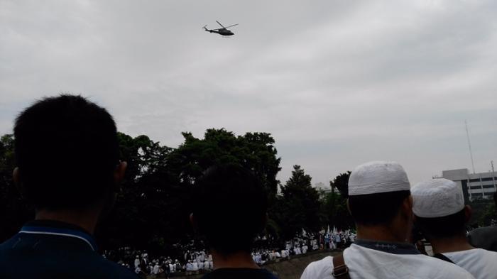 Helikopter itu terlihat mengelilingi komplek masjid sebelum menjauhi lokasi tersebut.
