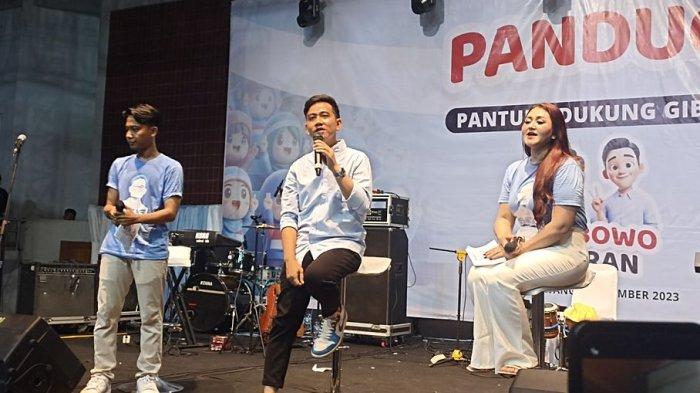 Ratusan relawan Pantura Pendukung Gibran (Pandugi) memenuhi Gedung Olahraga Panatayudha Kelurahan Nagasari, Kecamatan Karawang Barat, Kabupaten Karawa