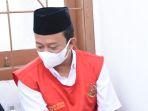 WA ditetapkan sebagai tersangka, biasanya pakai sarung kini WA menganakan baju tahanan berwarna orange, kepala digundul dan tangan diborgol.
