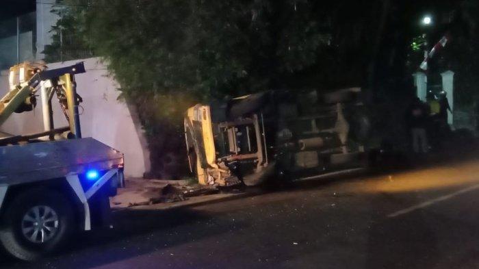 truk oleng ke kanan jalan saat melintas di kawasan Kampung Bondol, Desa Ciloto, Cipanas, tepatnya di jalan menurun dan menikung ke kiri.